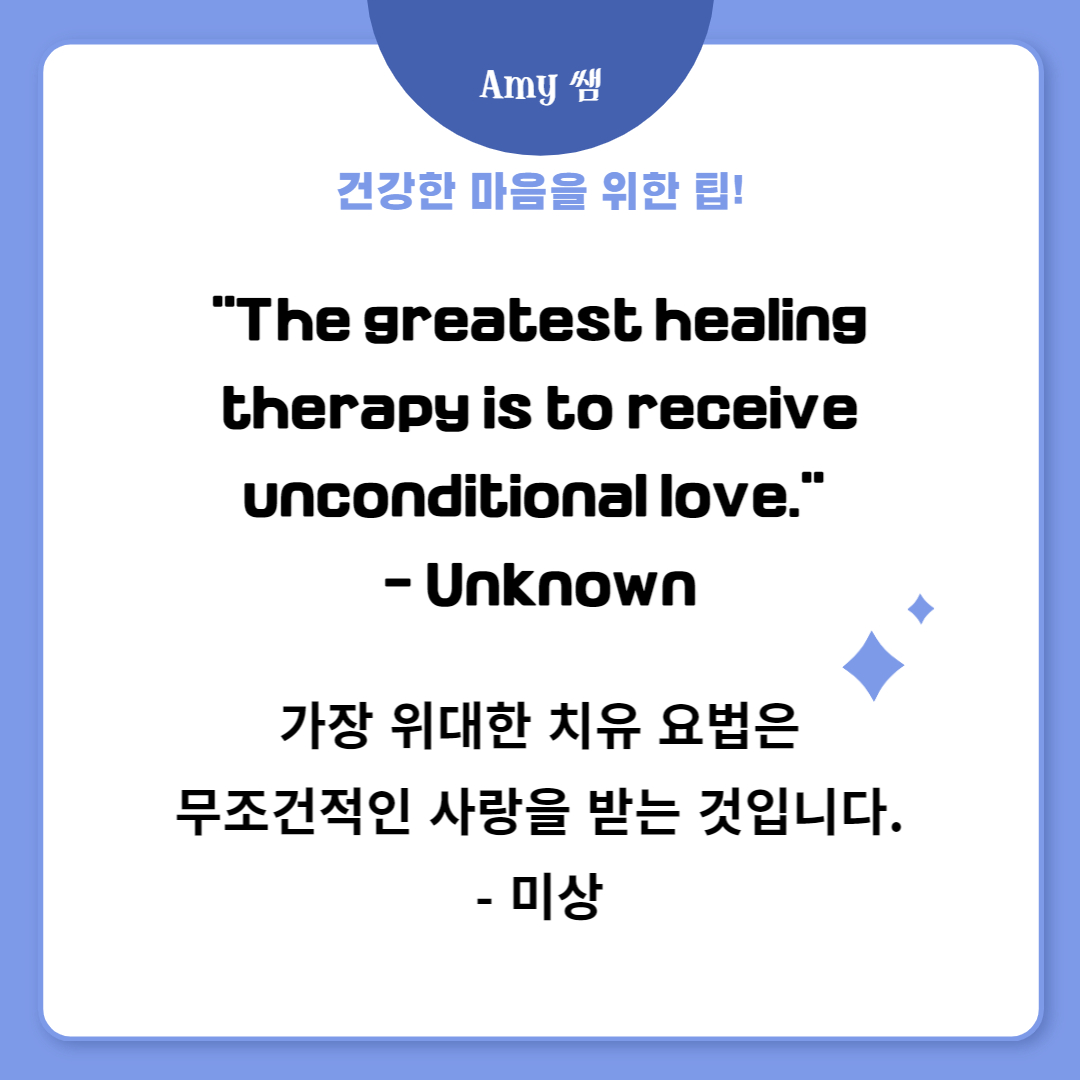 "가장 위대한 치유 요법은 무조건적인 사랑을 받는 것입니다." - Unknown