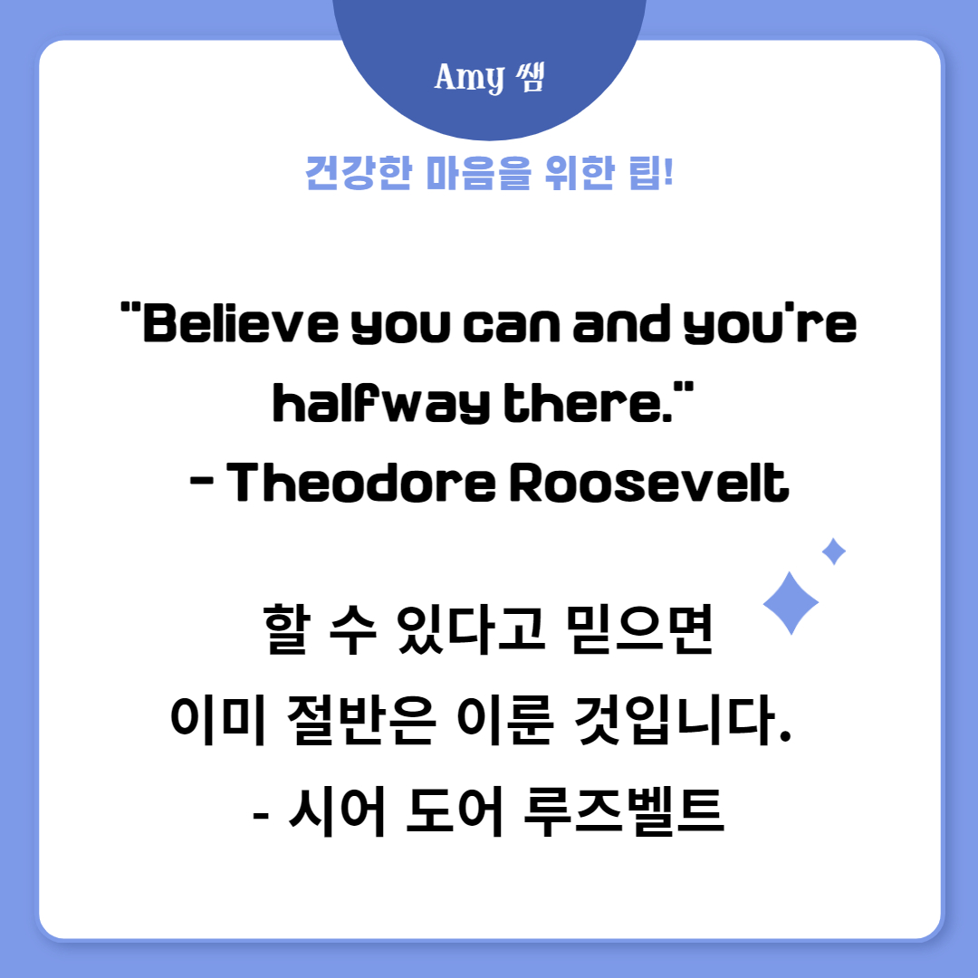 "할 수 있다고 믿으면 이미 절반은 이룬 것입니다." - 시어 도어 루즈벨트